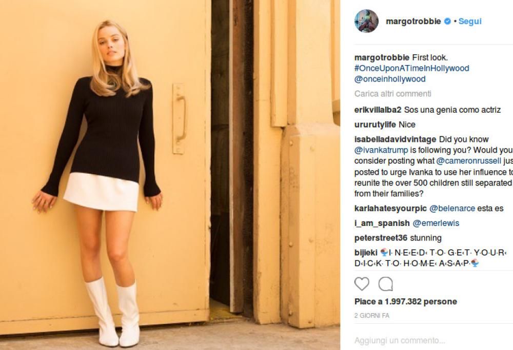 La didascalia della Robbie che accompagna la foto è semplice e diretta: «First look. #OnceUponATimeInHollywood», tanto è basato per far salire l’hype dei fan. Nel cast spiccano anche i nomi di Kurt Russel, Michael Madsen, Tim Roth, Timothy Olyphant e Zoë Bell.