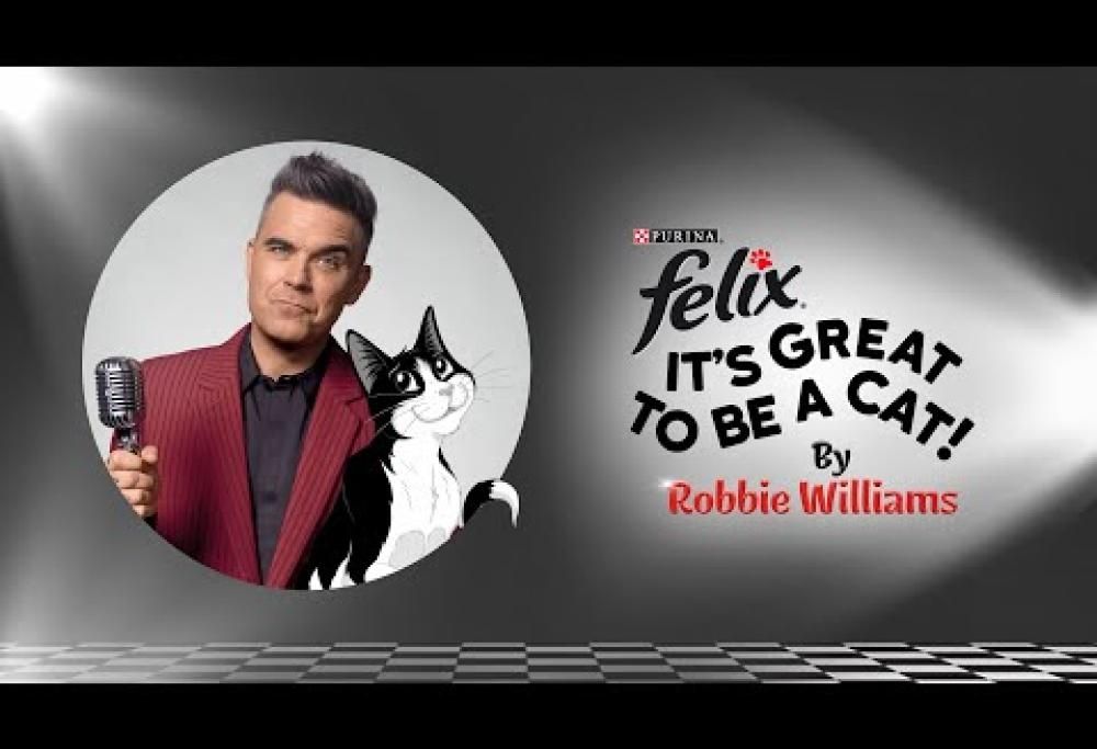 Robbie Williams adesso canta con il gatto Felix. Il brano si intitola “It’s Great to Be a Cat” e nel video c’è tanto di smagliante accompagnamento orchestrale, con un Robbie perfetto crooner e… la presenza del gatto Felix.