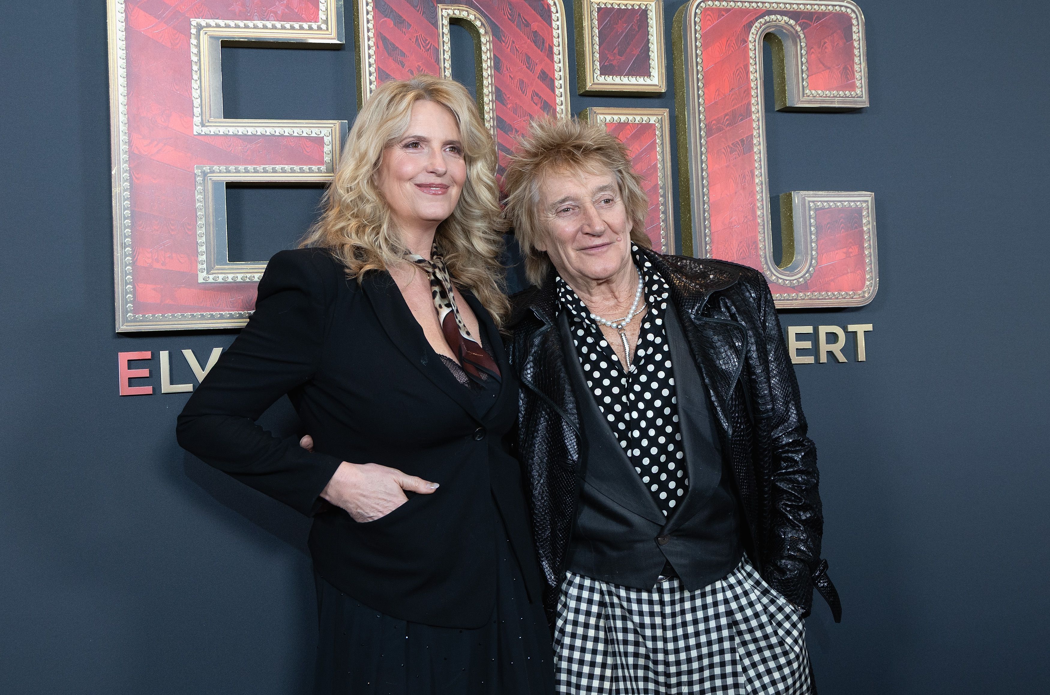 LONDON, ENGLAND - FEBRUARY 12: (L-R) Penny Lancaster and Rod Stewart attend the "EPiC: Elvis Presley in Concert" UK Premiere at BFI IMAX Waterloo on February 12, 2026 in London, England. (Photo by Jo Hale/WireImage)