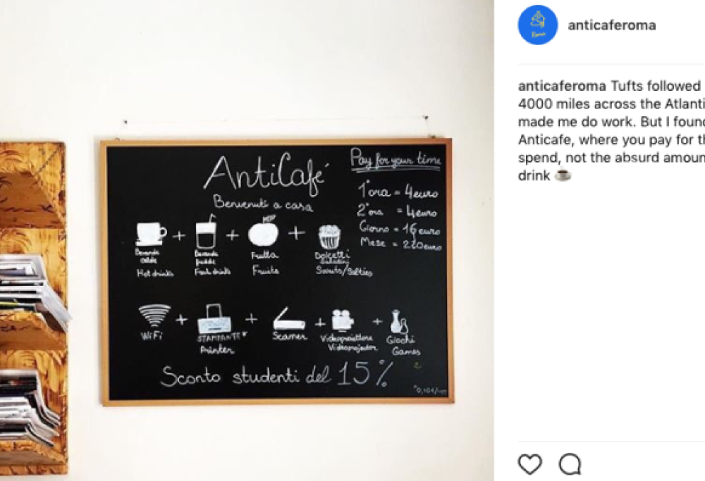Cosa ne pensate di un bar in cui è possibile consumare di tutto… gratis? Sì, di tutto: brioche, muffin, ciambelle, sandwich, pasticcini, caffè, tè, tisane… Questo bar esiste, si chiama Anticafè e si trova a Roma, nel quartiere di San Giovanni. I creatori di Anticafè si sono ispirati all’omonimo bar parigino che ha lanciato questa formula originale: tutto quel che si consuma è gratis. Si paga solo il tempo in cui si sta nel locale.