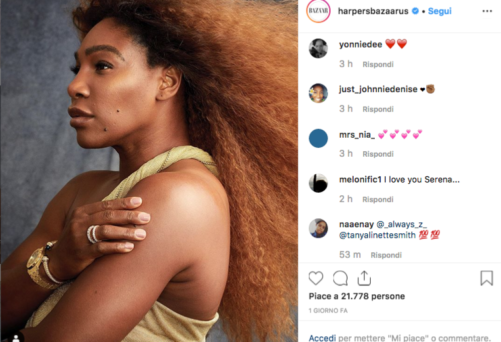 In tempi di photoshop esasperato, per modificare ogni particolarità che esula da un ideale astratto di perfezione, Serena Williams si è lasciata ritrarre (dal celebre fotografo Alexi Lubomirski) sulla copertina del prestigioso magazine Harper’s Bazaar così com’è, senza nessun ritocco.
