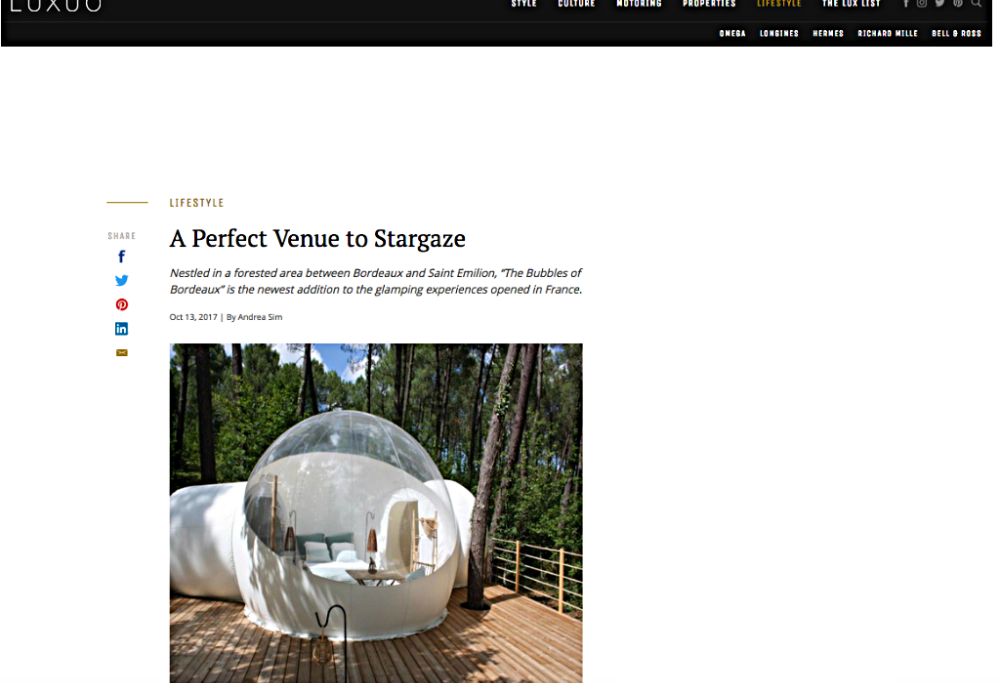 Tutto il fascino del contatto con la natura e... una lussuosissima bolla per un campeggio di gran lusso tra le più pregiate vigne di Francia