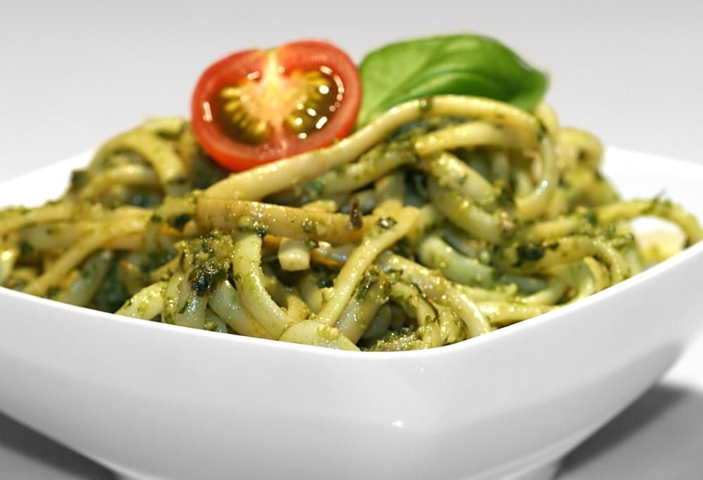 Ingredienti: pasta, sale grosso, 250 gr di patate, 200 g di fagiolini, pesto ligure. Tagliare a cubetti le patate sbucciate e i fagiolini, versare in pentola quando l’acqua è bollente. Dopo tre minuti aggiungere la pasta. Diluire il pesto in una ciotola con un po’ di acqua di cottura. Versare pasta, patate e fagiolini nella ciotola e amalgamare il pesto.
