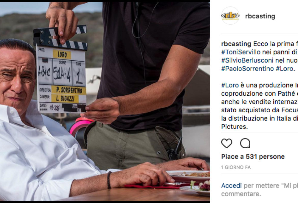 Paolo Sorrentino, già autore del film Premio Oscar “La grande bellezza” e della serie tv, ammiratissima, “The Young Pope“, è adesso al lavoro su un nuovo progetto. Intitolato “Loro“, racconta Silvio Berlusconi e le persone che lo circondano. A interpretare Berlusconi è Toni Servillo, che già per Sorrentino si era calato nei panni di un altro Presidente del Consiglio, Giulio Andreotti (il film era “Il divo”). La produzione ha diffuso le prime foto ufficiali del film, in cui Servillo appare per la prima volta nei panni di Berlusconi. Nei giorni scorsi il set si trovava in Toscana, tra Orbetello e Porto Ercole. Altre riprese, con Riccardo Scamarcio, erano state girate a Roma. Silvio Berlusconi, dopo aver incontrato Sorrentino, ha messo a sua disposizione la sua villa in Sardegna.
