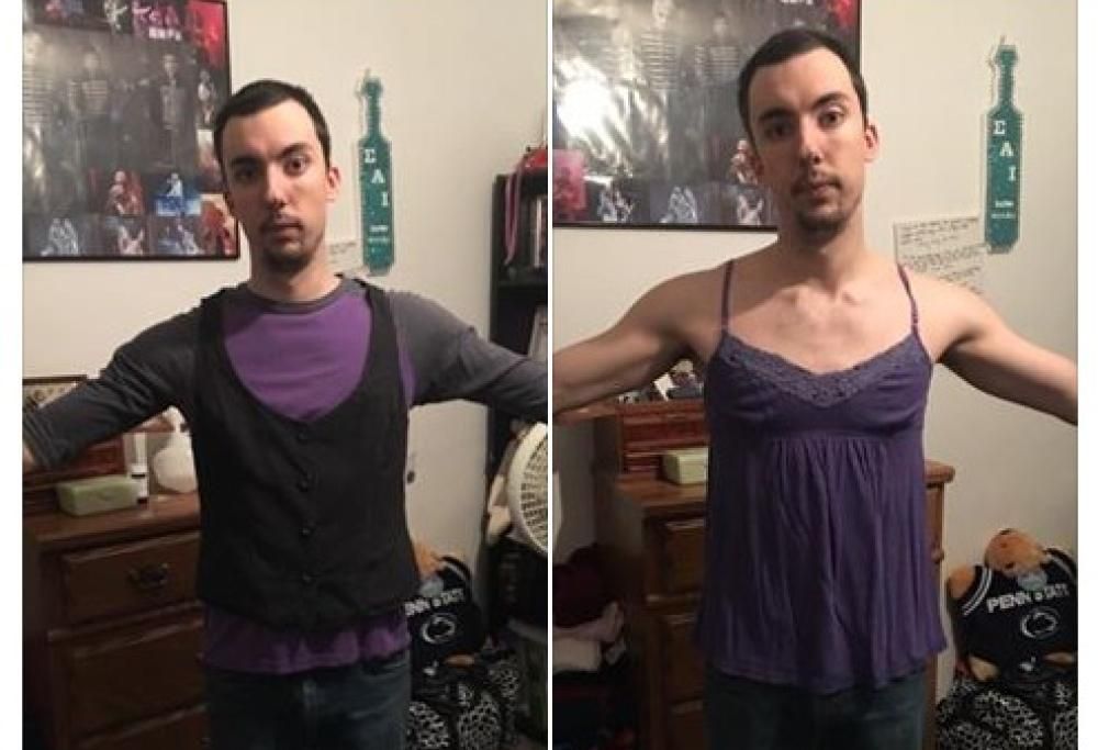 Un ragazzo indossa i vestiti della fidanzata per protesta