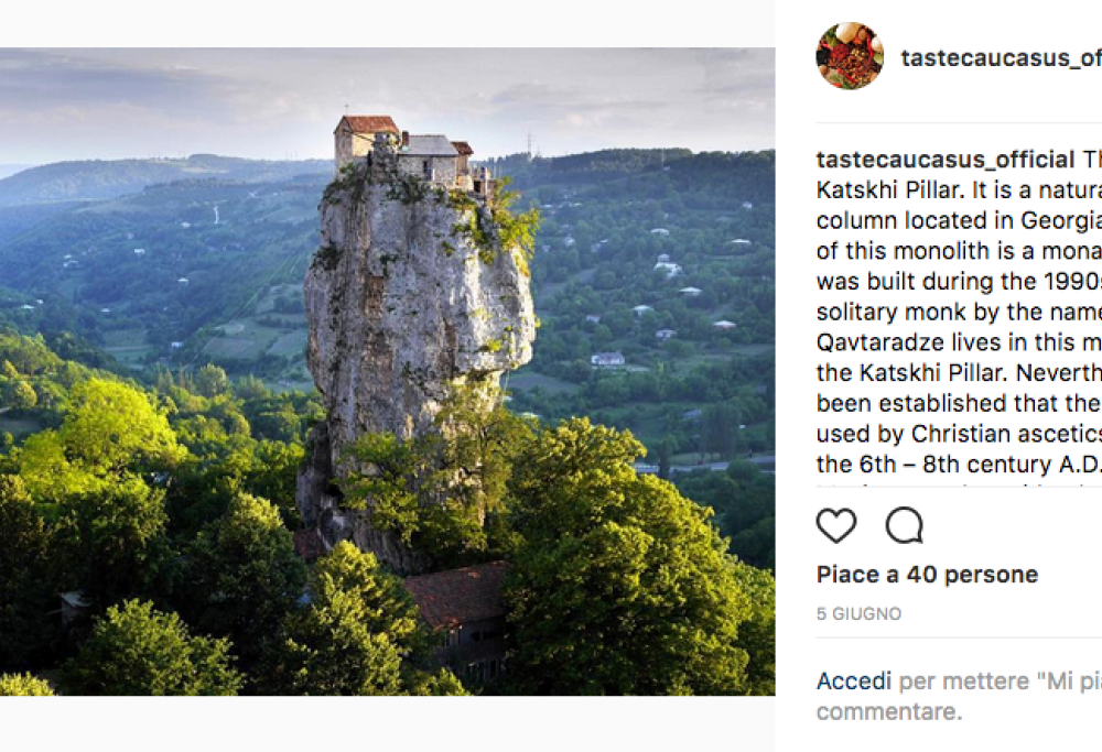 E’ una visione che toglie il fiato: un pinnacolo di roccia, su cui si annida un piccolo monastero. Questa incredibile località è Katskhi Pillar e si trova a Imereti, in Georgia.