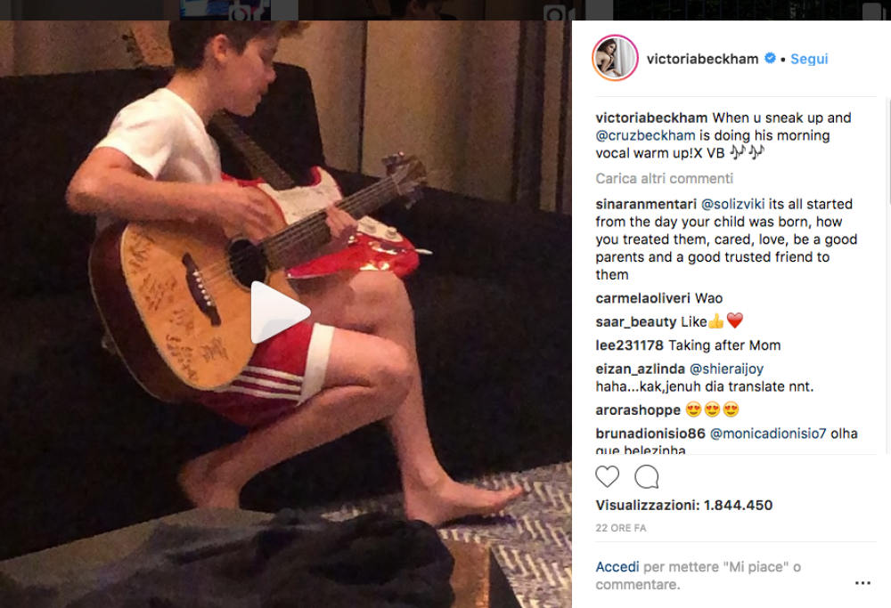 Sappiamo ormai che la famiglia Beckham non finisce mai di stupirci. Questa volta tocca al 13enne Cruz, che è stato colto dalla mamma Victoria a cantare una cover di Justin Bieber. Il momento è stato ovviamente condiviso dall’ex Spice Girl sui suoi social, dove il piccolo Cruz si diletta in una cover di “Love Yourself”, canzone del 2015 di Justin Bieber. Il giovane Beckham dimostra di essere molto bravo nella versione acustica del brano, infatti molti commenti di utenti l’hanno paragonato al Bieber degli esordi, nel 2009.