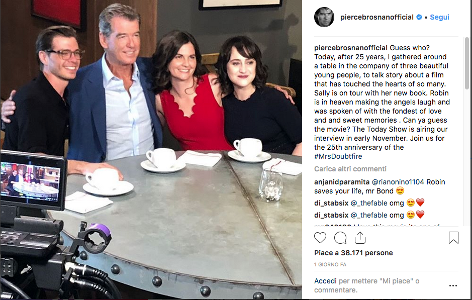 Pierce Brosnan ha pubblicato un video della reunion sulla sua pagina Instagram, aggiungendo questo post: «Indovina... oggi, dopo 25 anni, mi sono trovato a un tavolo insieme a tre bellissimi ragazzi, per parlare di un film che ha toccato il cuore di tanti. Sally (Field, altra interprete del film, n.d.r.) è in tour per presentare il suo nuovo libro. Robin è in paradiso dove sta facendo sorridere gli angeli e lo ricordiamo con il più toccante affetto e il più dolce ricordo».