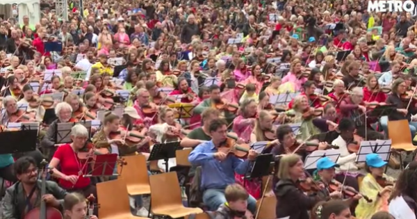 E' stato stabilito un nuovo record: ben 1.353 musicisti si sono radunati in Germania, nella piazza principale di Recklinghausen, per un concerto davvero speciale. E' stato infatti eseguito l'Inno alla gioia di Beethoven per soli archi.