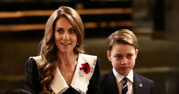 Madre e figlio hanno fatto il loro ingresso nella Royal Albert Hall, dove ogni anno la Royal British Legion organizza un concerto in ricordo della fine della Grande Guerra, con un’eleganza che ha catturato l’attenzione. La Principessa del Galles indossava il tradizionale papavero rosso appuntato sul cuore, mentre George, dodici anni, ha debuttato all’evento in un impeccabile completo scuro e cravatta coordinata.