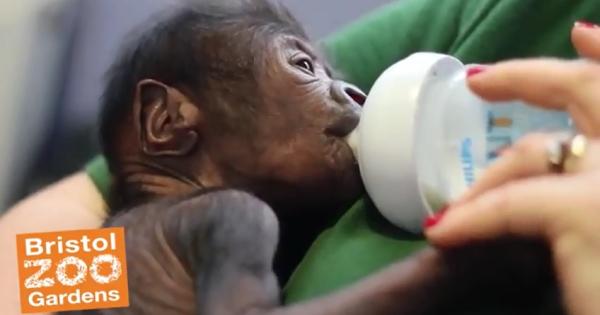 Ecco le immagini di un cucciolo di gorilla che è stato fatto nascere al "Bristol Zoo Gardens", in Inghilterra, grazie a un rarissimo parto cesareo d'emergenza.