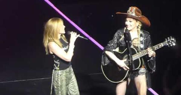 La Minogue ha raggiunto madonna sul palco della tappa a Los Angeles del Celebration Tour.